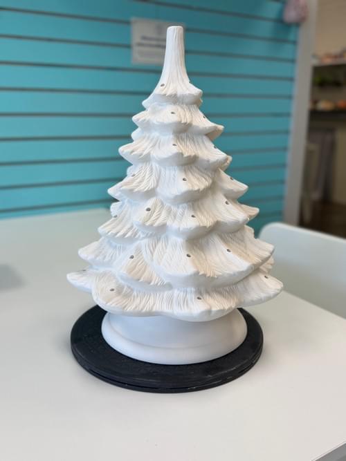Our 17" ceramic trees come ready to paint and include, electric cord and bulb, multicolored decorative plastic "lights", studio time for painting, paint and kiln firing.